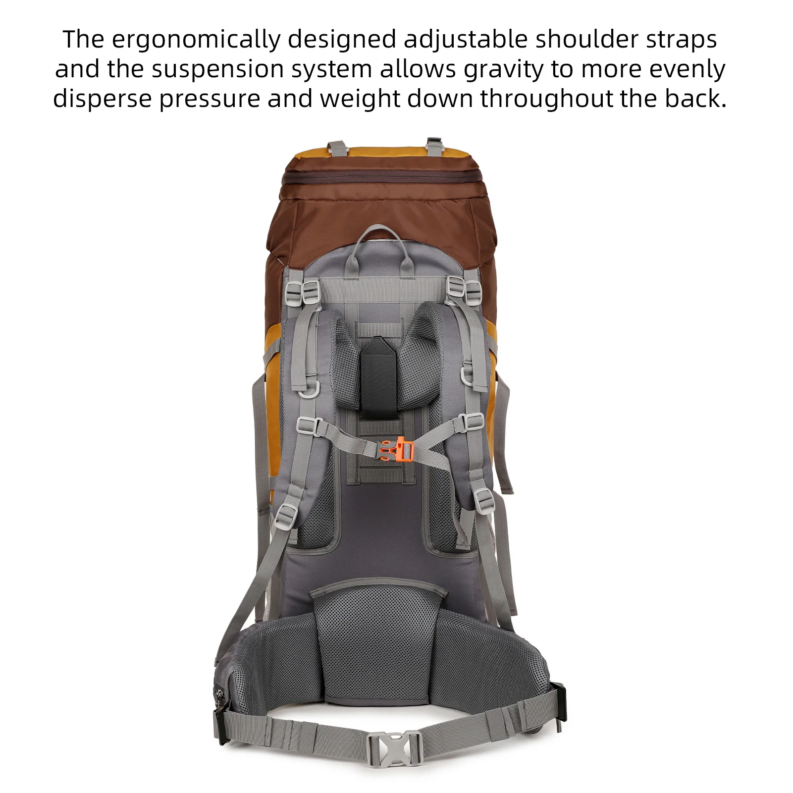 With a capacity of 75 liters large size, you can pack all your travel essentials and camping gear in this hiking backpack.