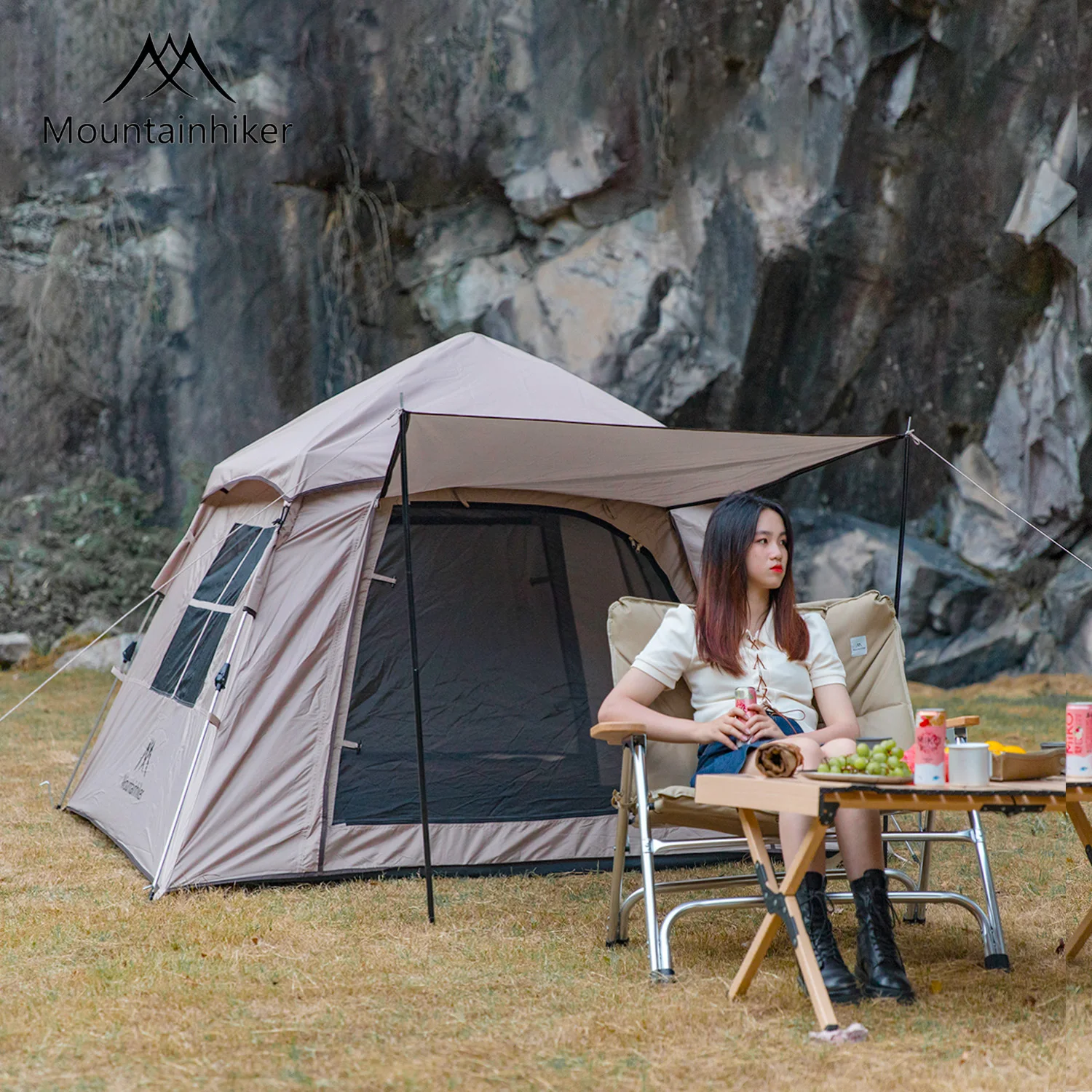 Mountainhiker Automatic Tent 3-4 Persons 2 Doors 2 Windows Sleeping Tent Outdoor Tent Hiking and Camping Tent Black Khaki