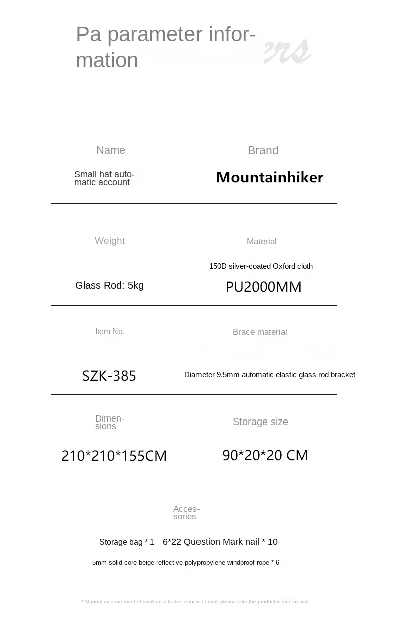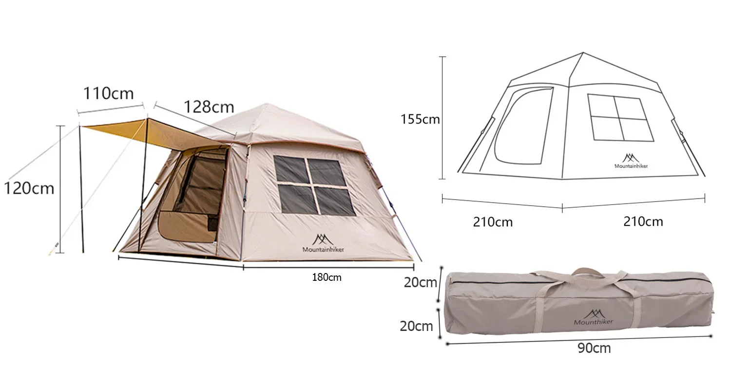 Mountainhiker Automatic Tent 3-4 Persons 2 Doors 2 Windows Sleeping Tent Outdoor Tent Hiking and Camping Tent Black Khaki - Khaki Glass Rod is backordered and will ship as soon as it is back in stock.
