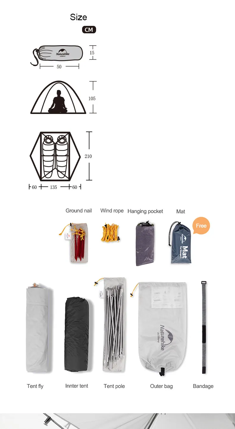 Naturehike Mongar 20D Nylon outdoor ultralight hiking adventure tent Waterproof Folding Camping 2 man camper tent