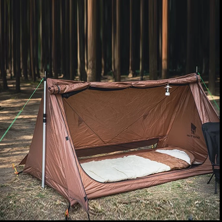 Tents Outdoor Camping Waterproof Ultralight 2 Ppl Rodless Single Iayer Tent Shed Survival Equipment Hiking Supplies - Curry color / CHINA is backordered and will ship as soon as it is back in stock.