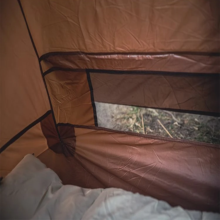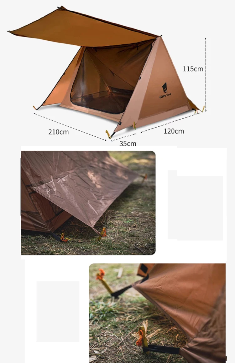 Anti-tear 210T polyester with PU coating and high-density mesh fabric, high waterproof index of 3000mm; A-frame tent design sheds rain and wind while still being lightweight, compact and easy to assemble.