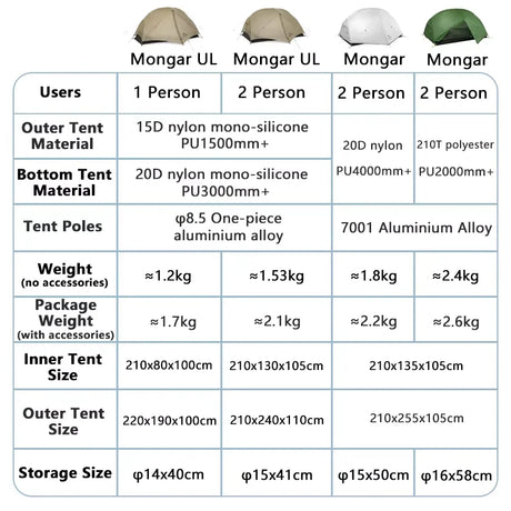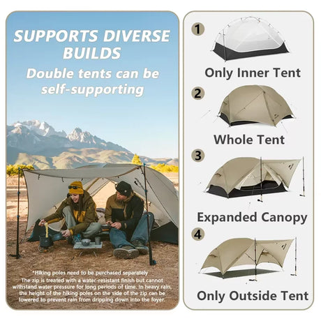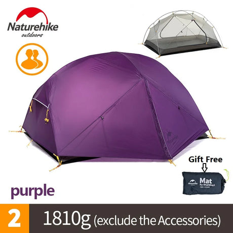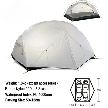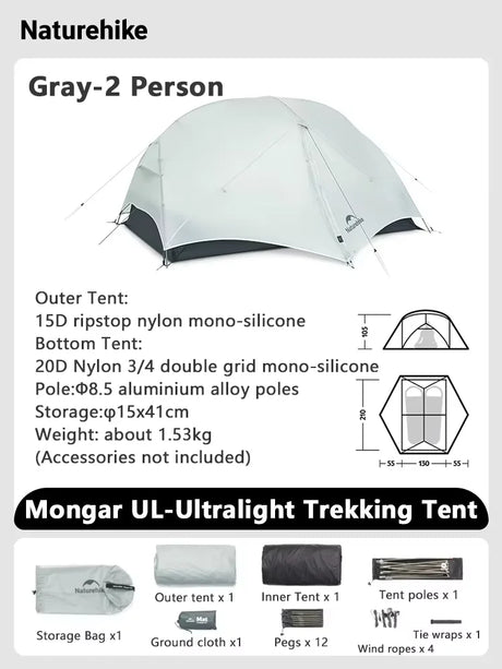 Naturehike-Mongar 2 Camping Tent, Double Layers, Waterproof, Ultralight Dome Tent, 2 Person