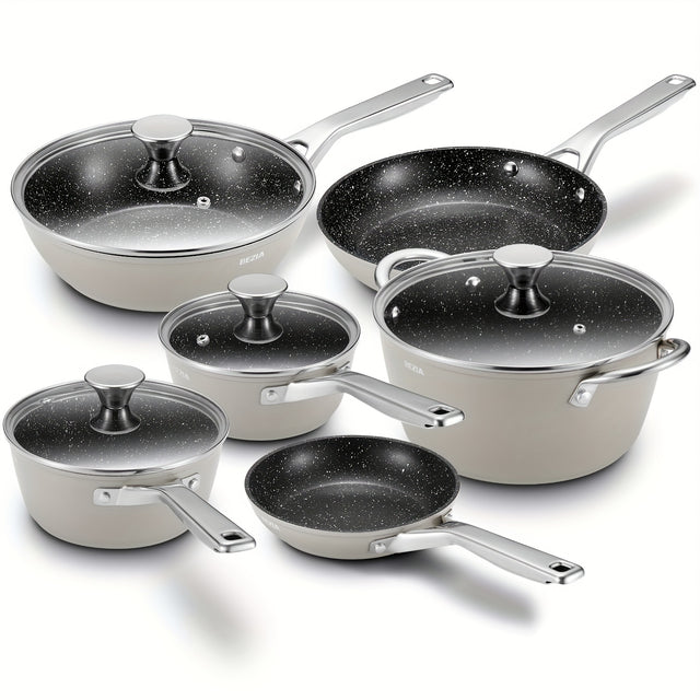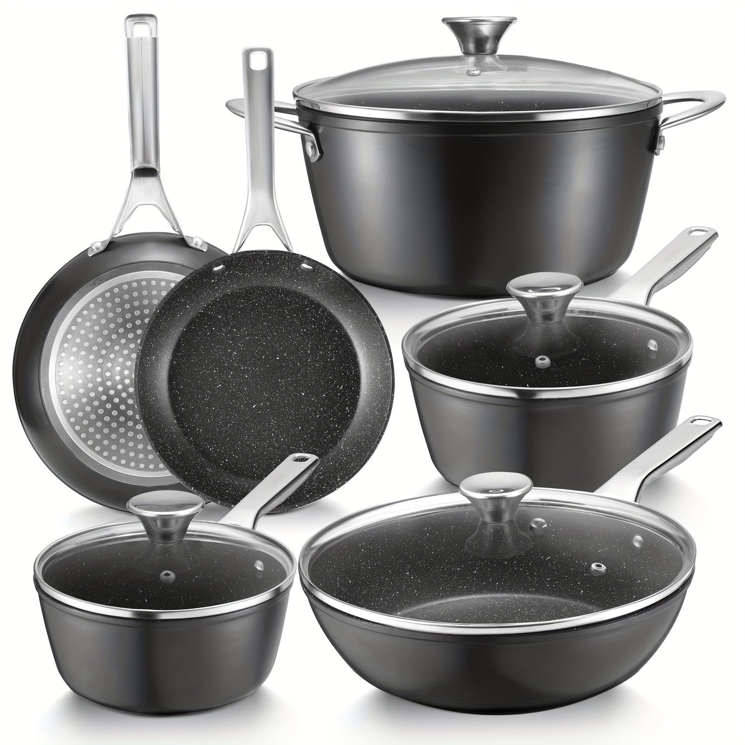10-Piece Deluxe Induction Cookware Set - Non-Stick, Dishwasher/Oven Safe, Compatible with All Stoves, Frying Pans, Saucepans, Stockpot, and More - Premium Kitchen Cooking Essentials for Home Chefs