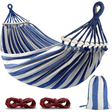 2-Person Anti-Flip Camping Hammock with Striped Design - Spacious Double Hammock with Quick-Setup Straps & Durable 100% Polyester Fabric for Couples, Friends - Perfect for Backyard, Beach, Hiking & Outdoor Adventures, Beach H - Blue White is backordered and will ship as soon as it is back in stock.