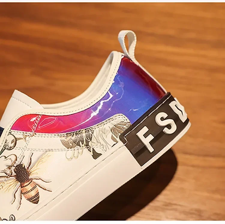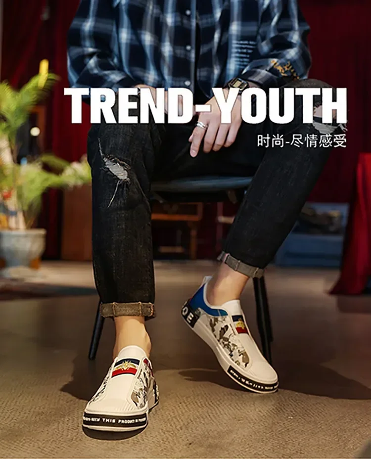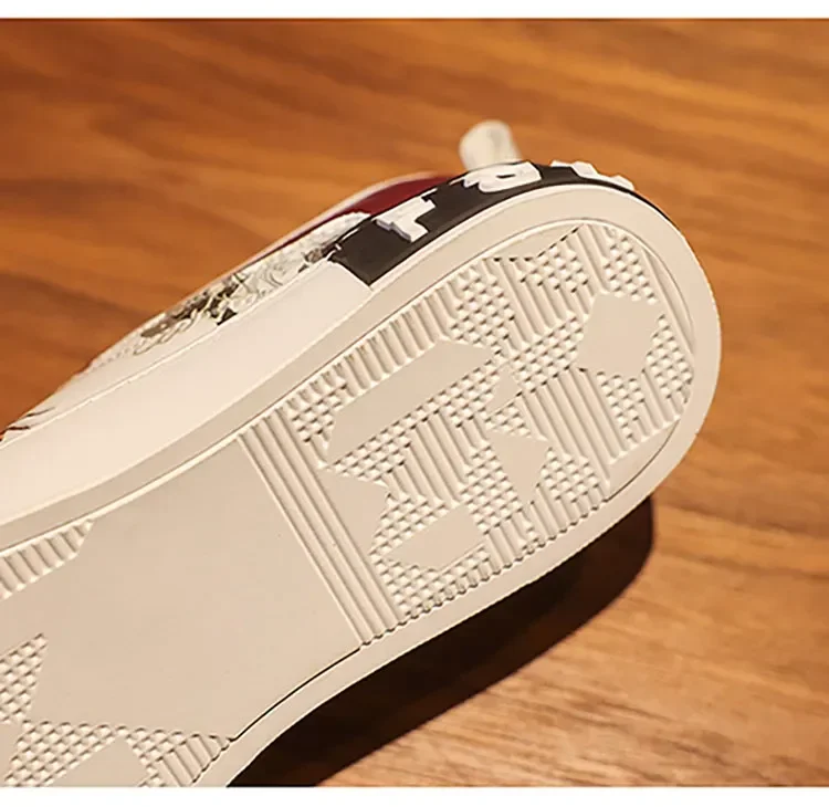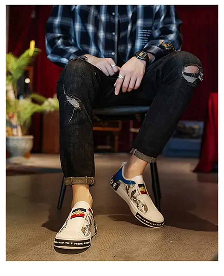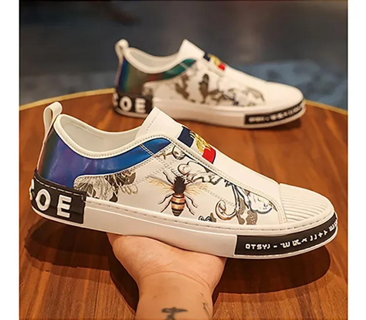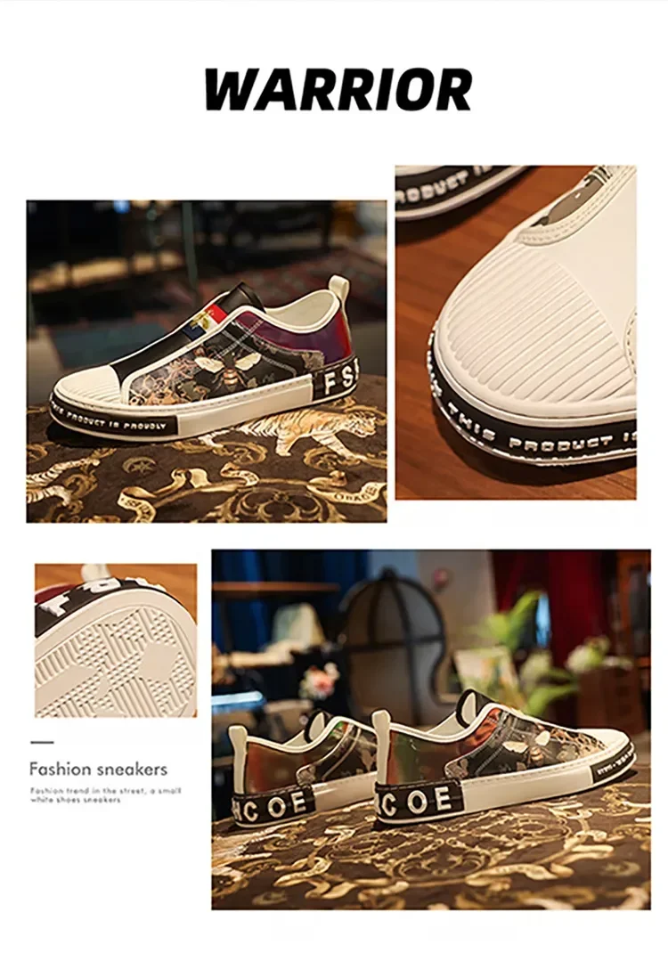 Men’s Leather Slip-On Sneakers – Trendy Casual Loafers with Street Style Print